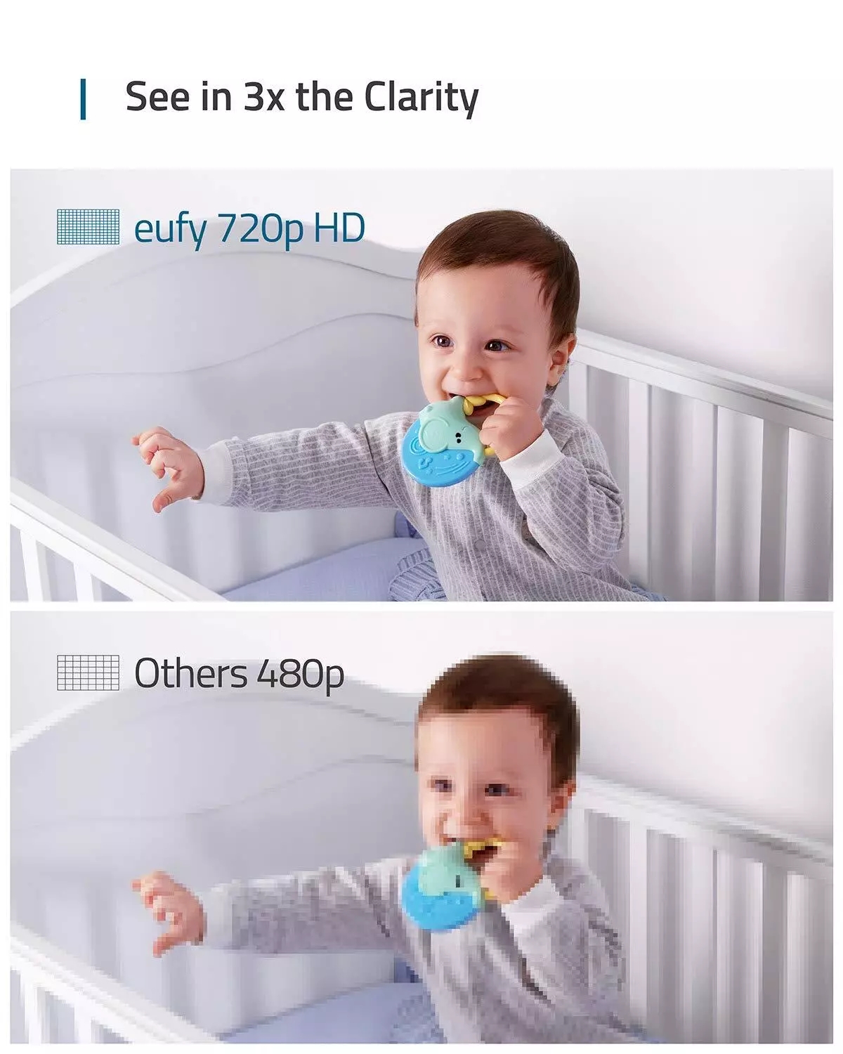 The large 5″ 720p video baby monitor display shows a sharp picture with 10 times more detail than ordinary 240p-display baby monitors.